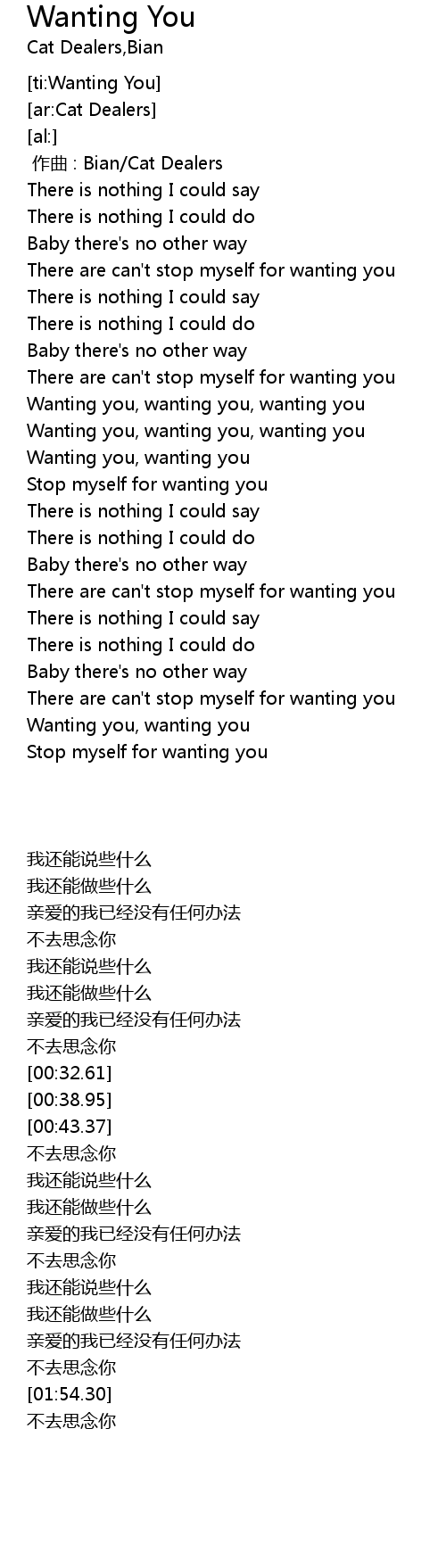 | [00:32.61] | Wanting you, wanting you, wanting you |