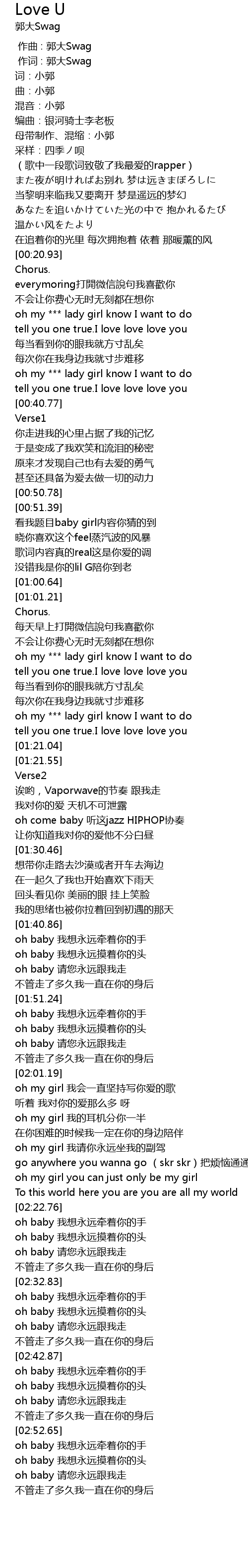 | [00:00.000] | 作词 : 郭大Swag |