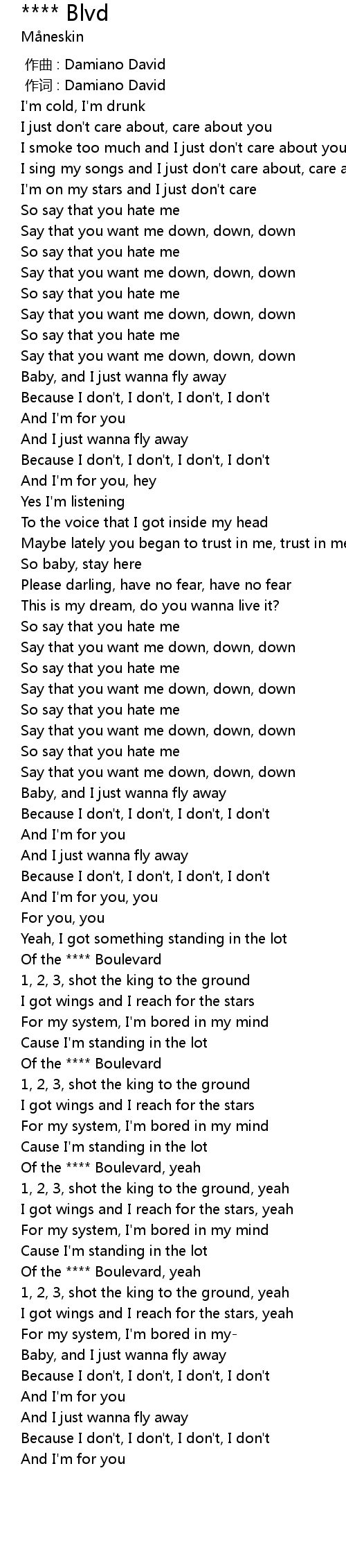 | [02:41.76] | Of the **** Boulevard, yeah |