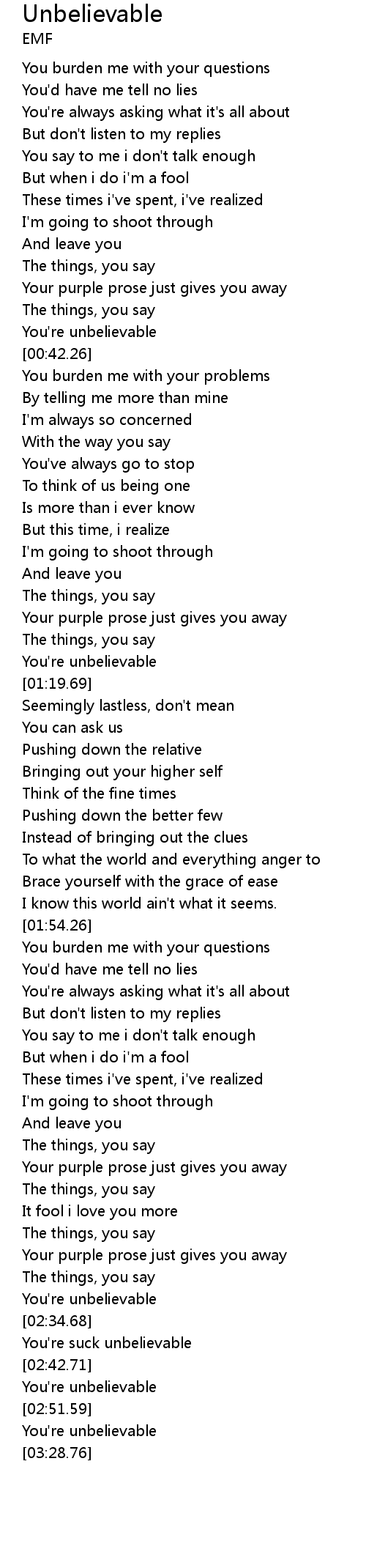 You're unbelievable |