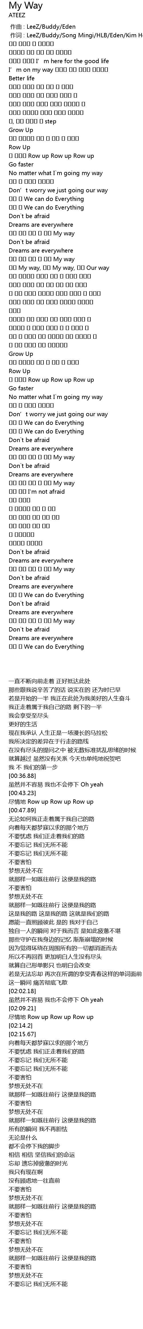 | [01:22.97] | 그냥 가던 대로 가 이게 My way |