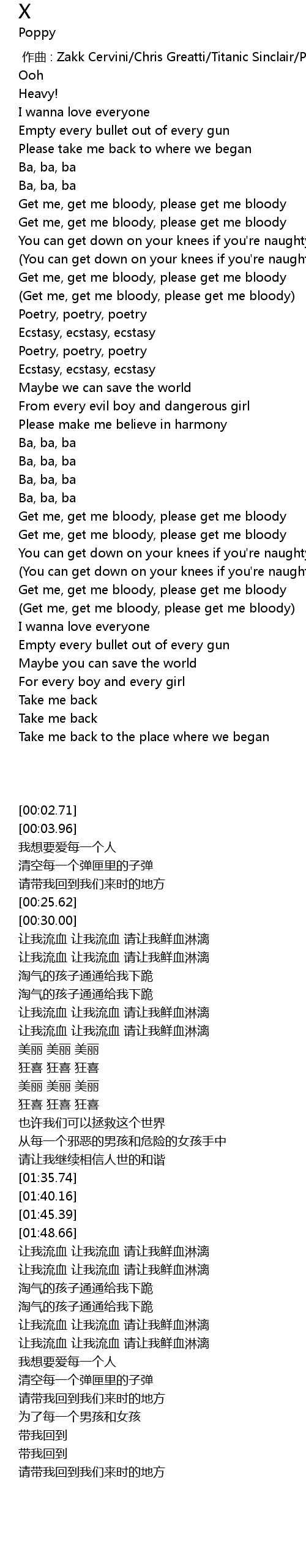 | [01:59.10] | Get me, get me bloody, please get me bloody |