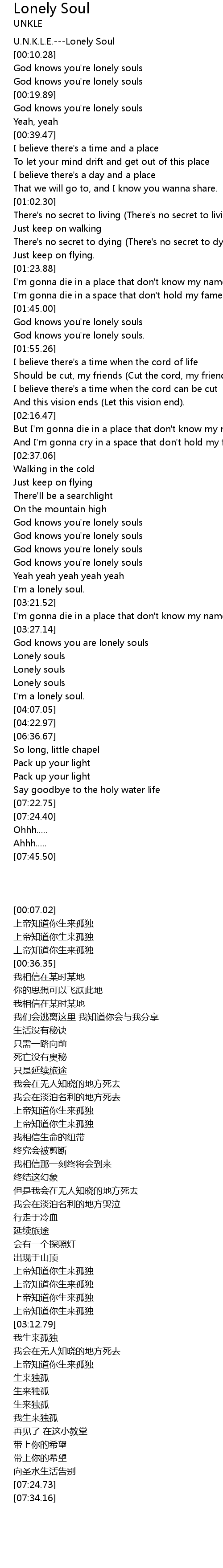 U.N.K.L.E.---Lonely Soul |