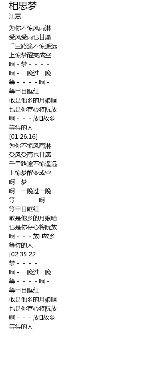 | [00:41.65] | 啊-梦---- |