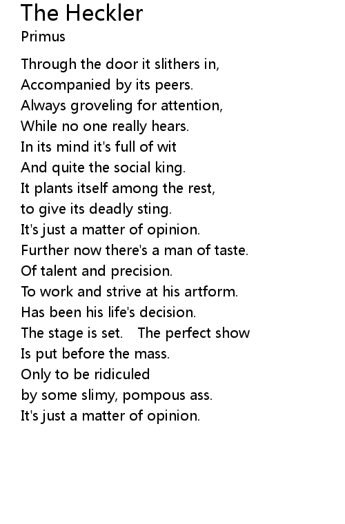 | Song | The Heckler |