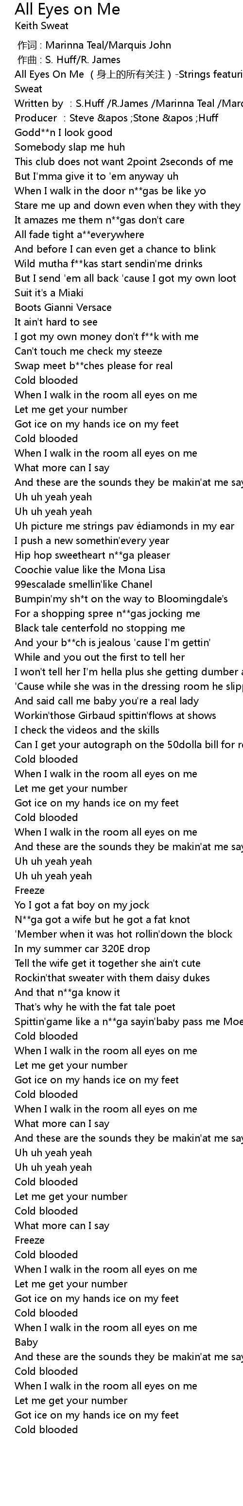 | [00:00.00] | All Eyes On Me shēn shàng de suǒ yǒu guān zhù Strings featuring Keith Sweat |