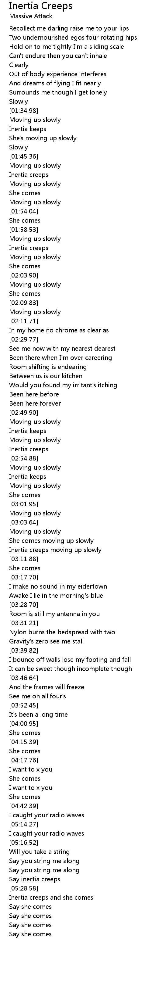 Inertia creeps and she comes |
