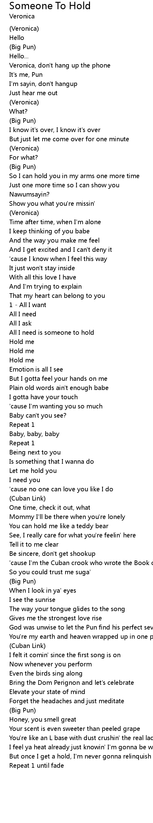 All I need is someone to hold |