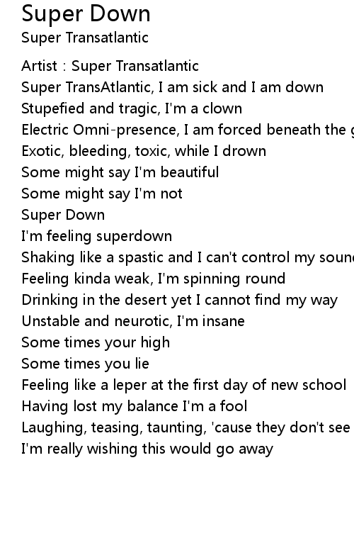 | Super TransAtlantic, I am sick and I am down | |