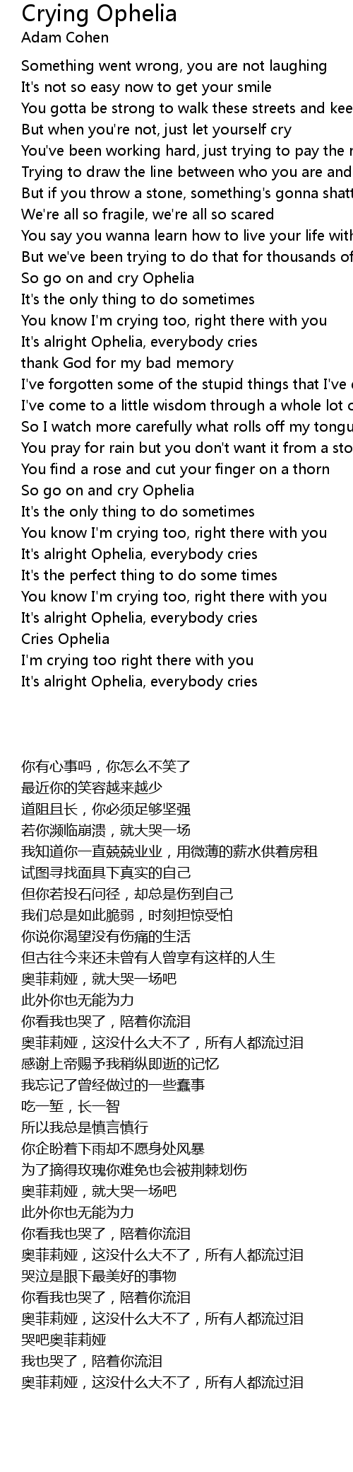 So go on and cry Ophelia |