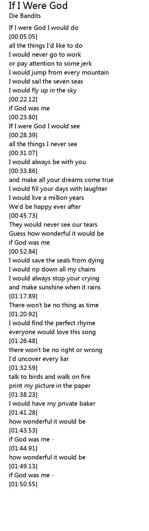 If I were God I would do |