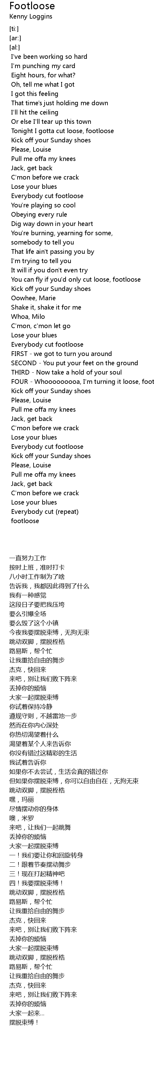 FOUR - Whooooooooa, I'm turning it loose, footloose |