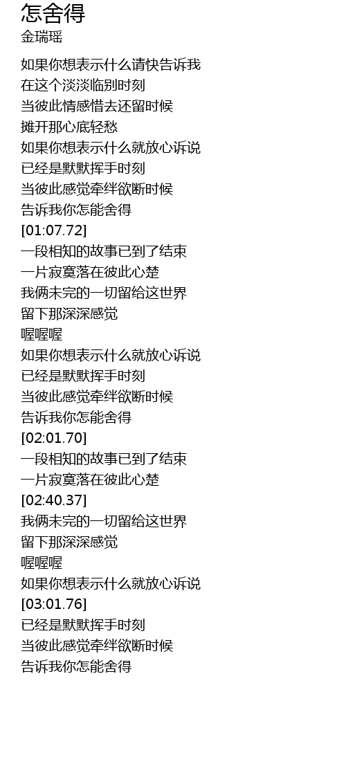| [00:43.18] | ru guo ni xiang biao shi shen me jiu fang xin su shuo |