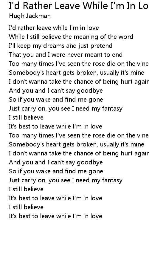 I'd rather leave while I'm in love |