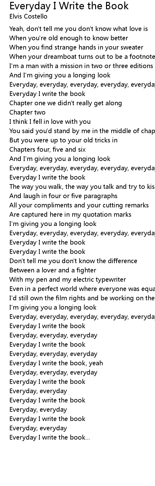Everyday I write the book, yeah |