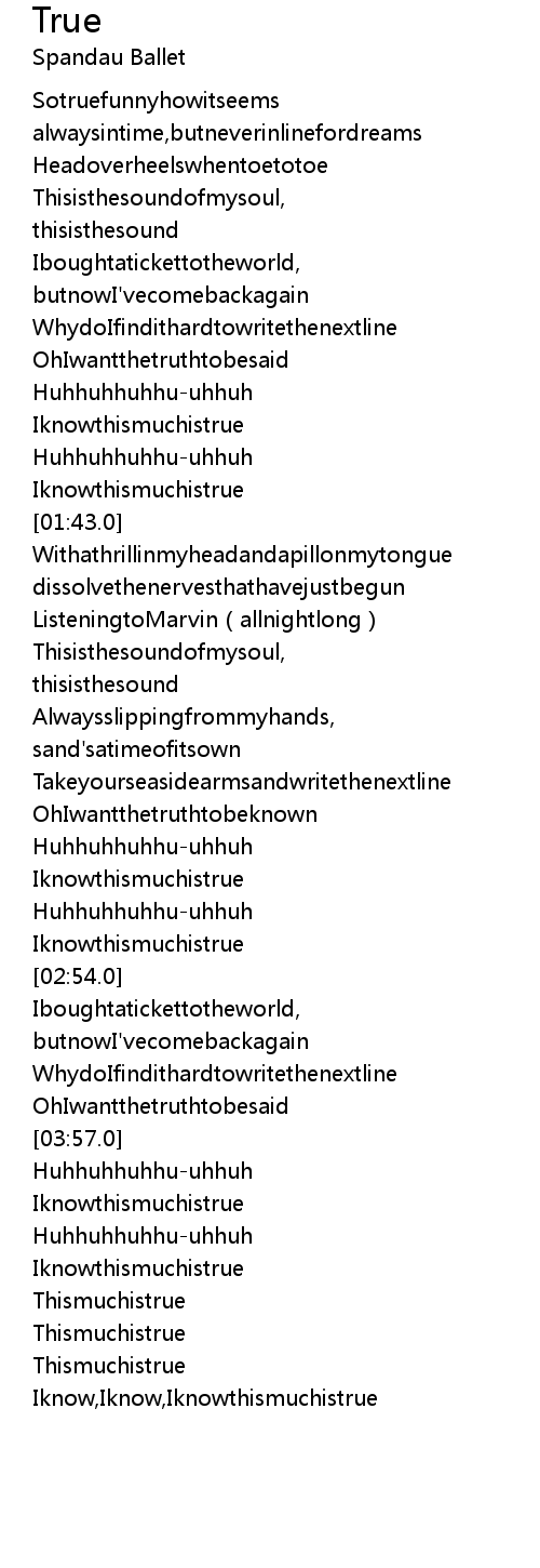 | [04:44.0] | Iknow, Iknow, Iknowthismuchistrue |
