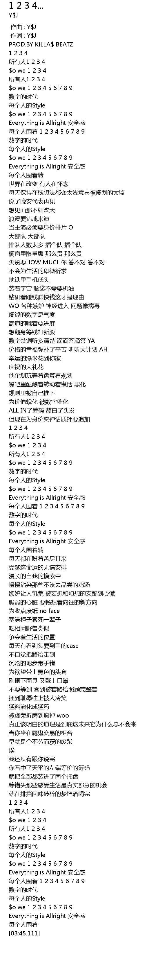 | [03:29.494] | 每个人围着 1 2 3 4 5 6 7 8 9 |