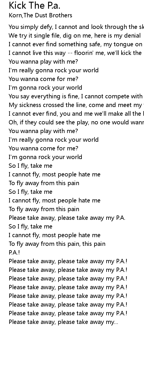 I cannot live this way -- floorin' me, we'll kick the P.A. |