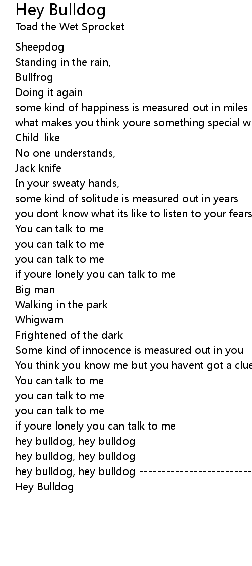 hey bulldog, hey bulldog -------------------------- Toad The Wet Sprocket Hey Bulldog |