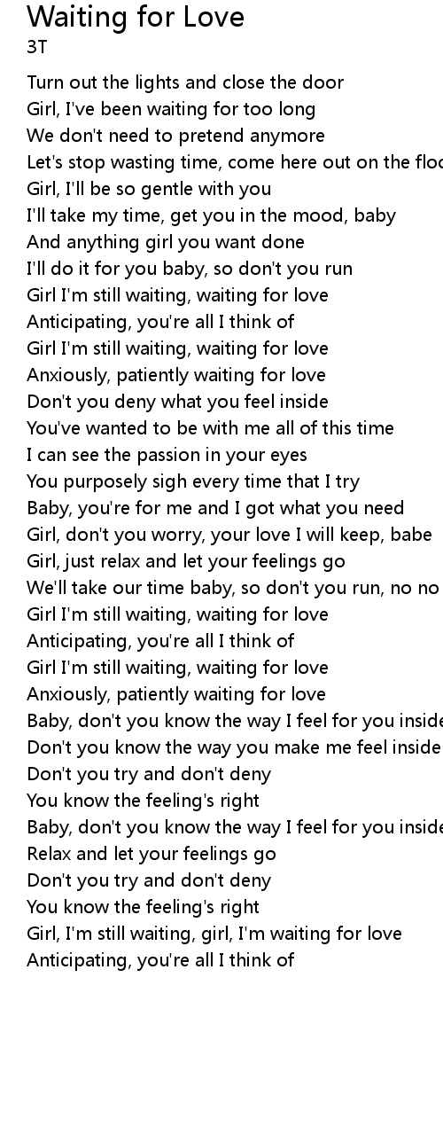 Girl, I'm still waiting, girl, I'm waiting for love |