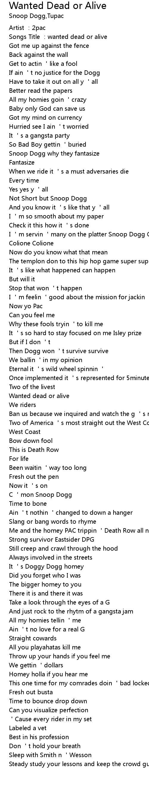 | [01:17.615] | Me and the homey PAC trippin Death Row all nights |