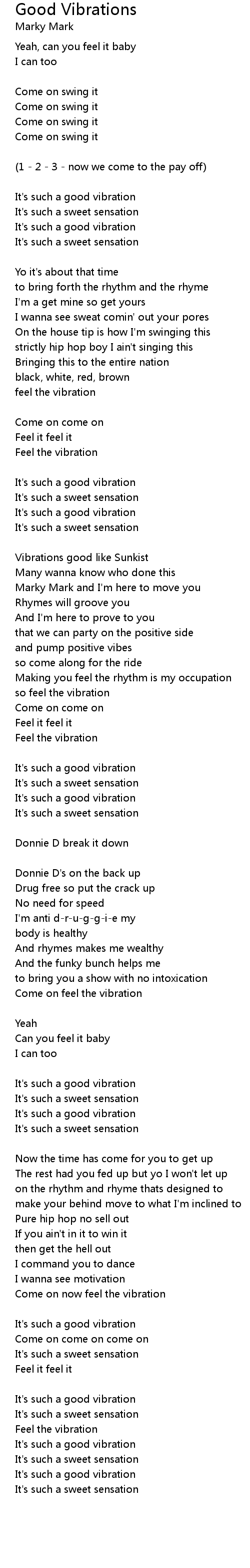 It's such a good vibration |
