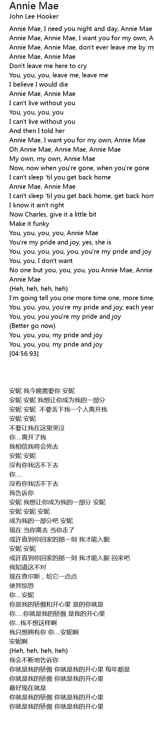 Oh Annie Mae, Annie Mae, Annie Mae |