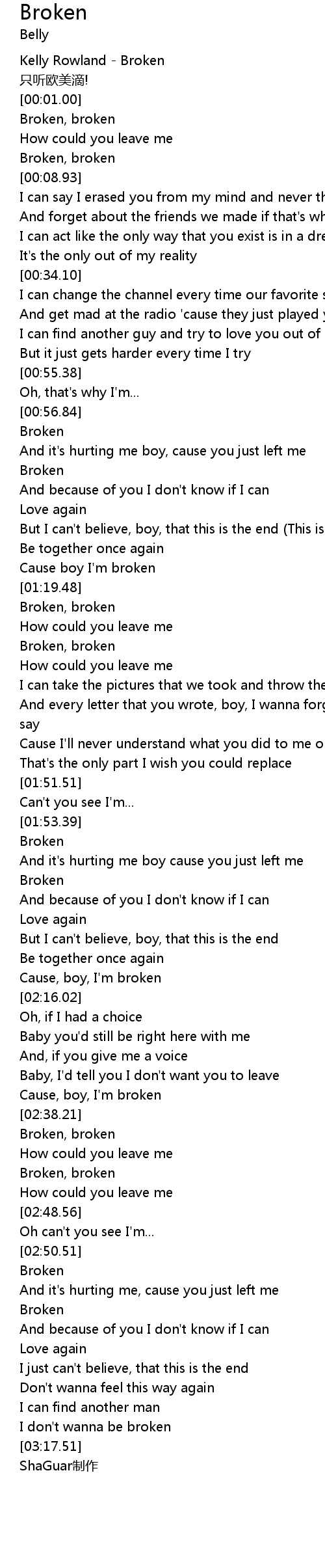 | [01:56.04] | And it's hurting me boy cause you just left me |