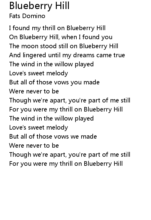 On Blueberry Hill, when I found you |
