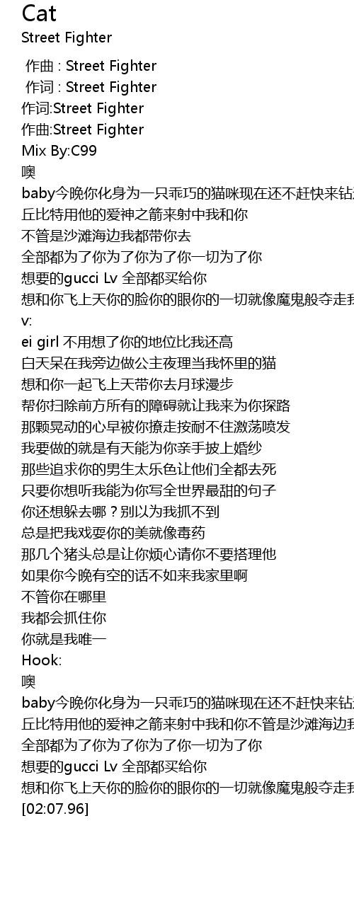 | [00:01.000] | 作词 : Street Fighter |