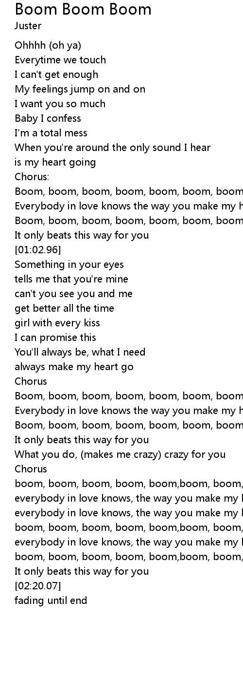 | [01:22.08] | Boom, boom, boom, boom, boom, boom, boom |