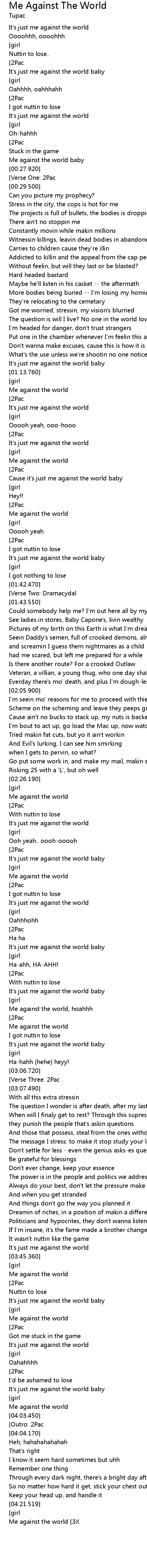 | [03:49.700] | It's just me against the world baby |