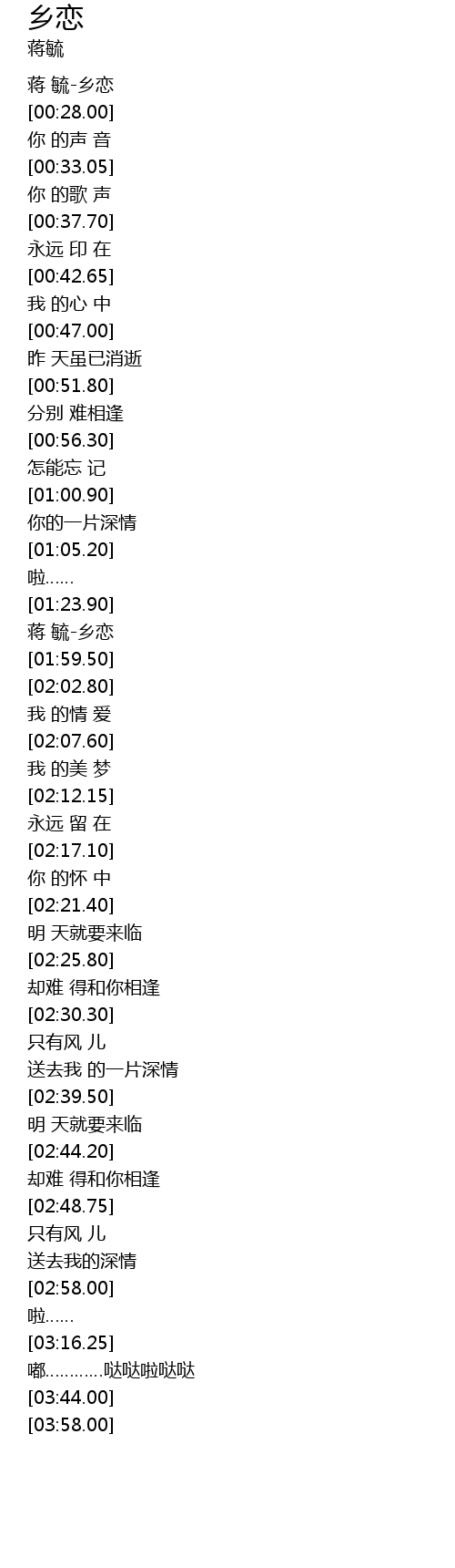 [01:25.80] 蒋 毓-乡恋
