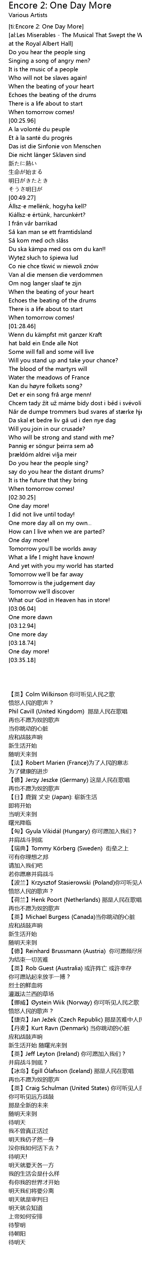| [ti:Encore 2: One Day More] | |