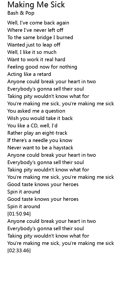 You're making me sick, you're making me sick |