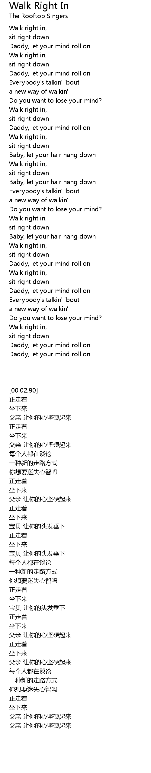 Walk right in, |