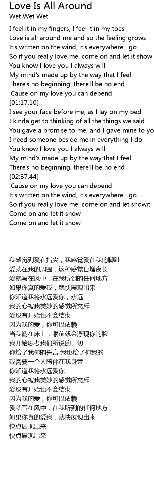 Love is all around me and so the feeling grows |