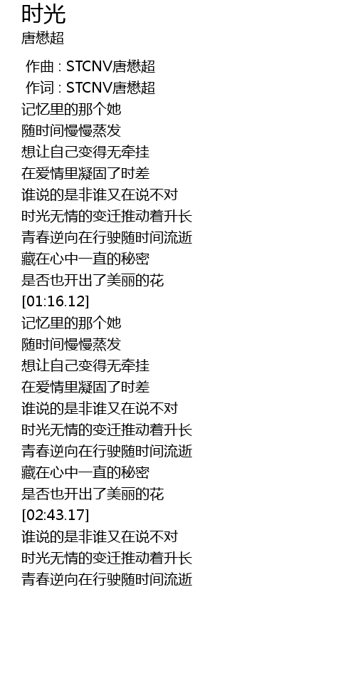 | [00:01.000] | 作词 : STCNV唐懋超 |