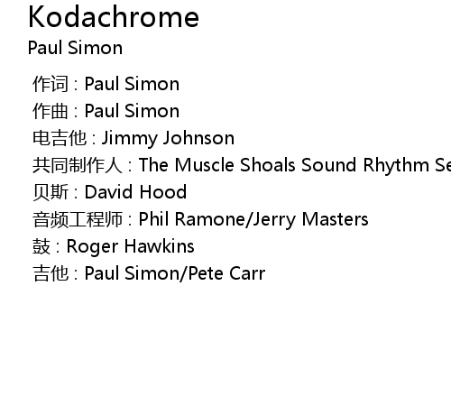 | [00:00.000] | 吉他 : Paul Simon/Pete Carr |