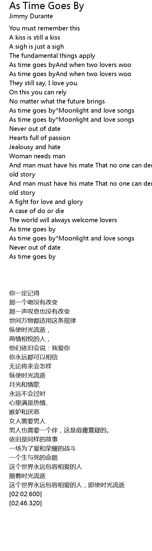 As time goes byAnd when two lovers woo |