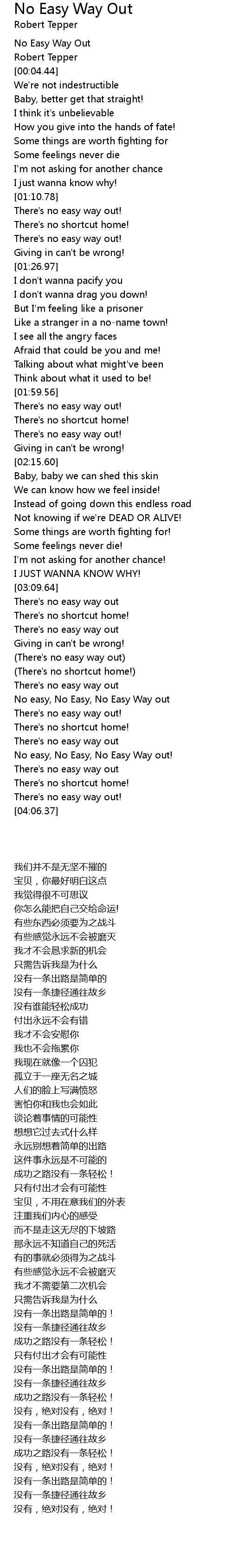 [03:51.61] No easy, No Easy, No Easy Way out!