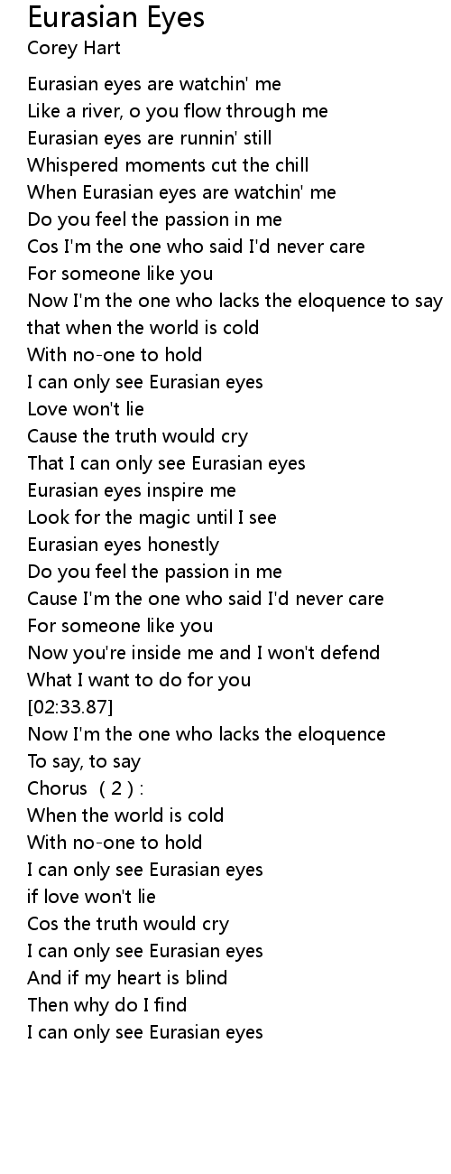 | [01:47.49] | That I can only see Eurasian eyes |