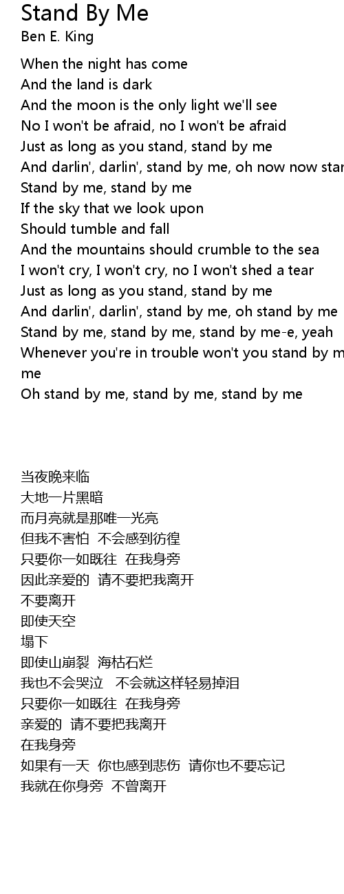 Whenever you're in trouble won't you stand by me, oh now now stand by me |