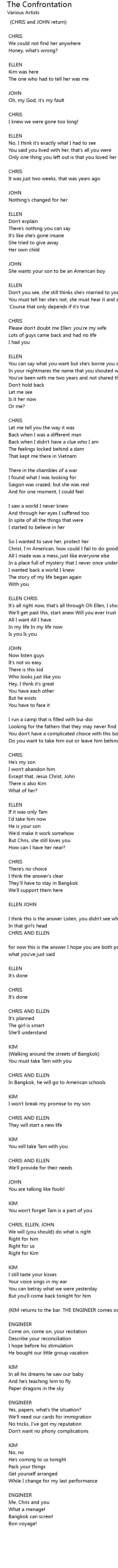 It's all right now, that's all through Oh Ellen, I should have told you |