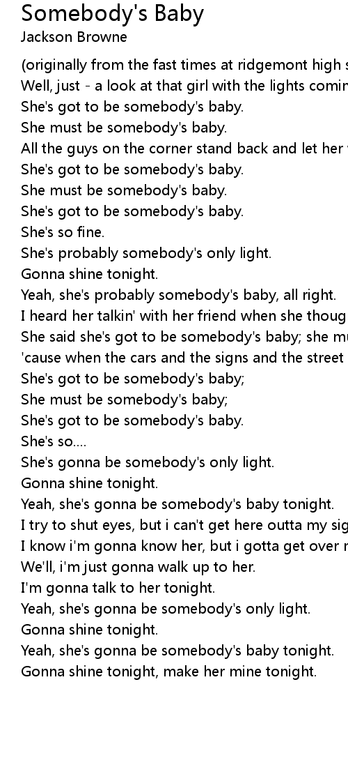 She said she's got to be somebody's baby; she must be somebody's baby. |