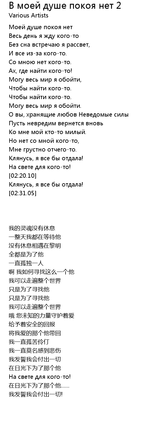 | [02:13.50] | Клянусь, я все бы отдала! |