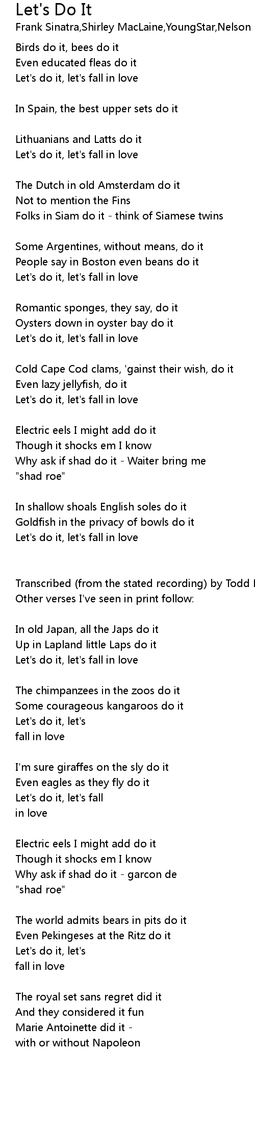 Let's do it, let's fall in love |