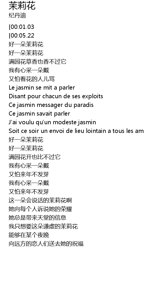 | [03:04.63][00:05.22] | 茉莉花 3'19" |