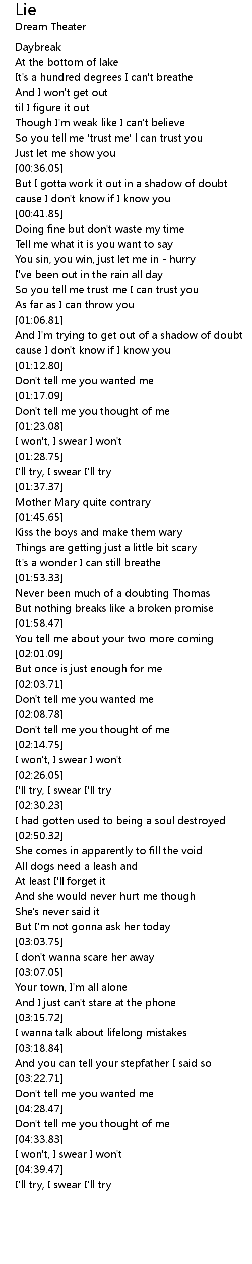 So you tell me trust me I can trust you |