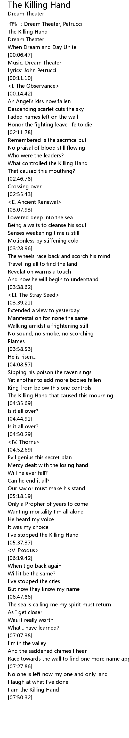 | [00:00.00] | 作词 : Dream Theater, Petrucci |